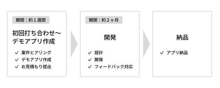 初回の打ち合わせからわずか1週間でデモアプリを作成し実機でご確認いただいたことが、本サービスを選んでいただく大きなポイントとなりました。